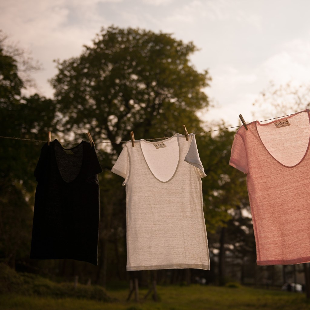 Enfin, culture, comme transformation du lin biologique GOTS, de la graine au produit fini, sont réalisées en France, excepté la filature, et les teintures sont naturelles, certifiées Oeko-tex.