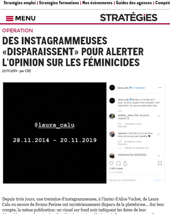 STRATEGIES : Des instagrammeuses « disparaissent » pour alerter l’opinion sur les féminicides