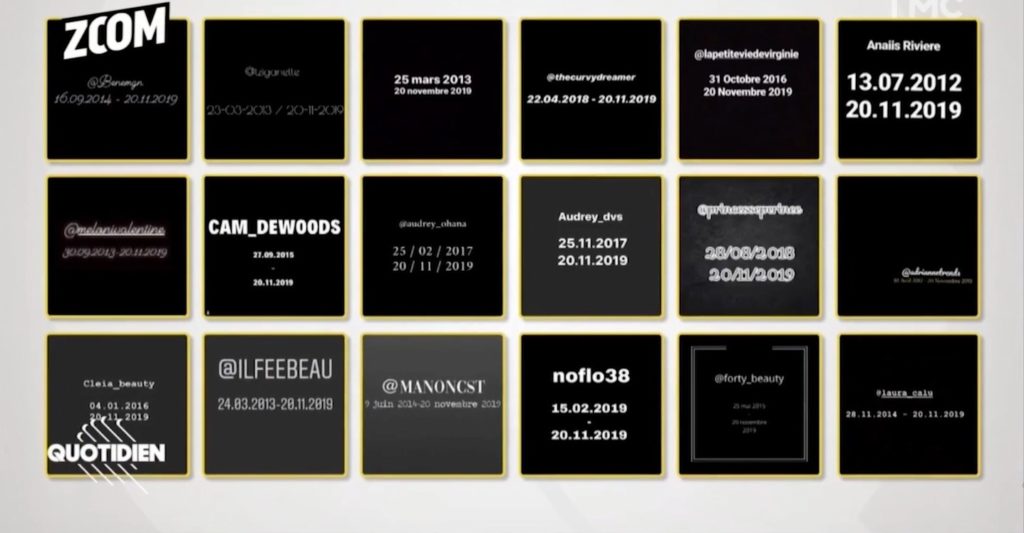 22/11/2019 – Depuis trois jours, une trentaine d’instagrammeuses, à l’instar d’Alice Vachet, de Laura Calu ou encore de Swann Perisse ont mystérieusement disparu de la plateforme… Sur leur compte, la même publication: un visuel sur fond noir indiquant les dates de leur disparition, sans fournir plus d’explication. Aujourd’hui, ces influenceuses vont expliquer leur geste...