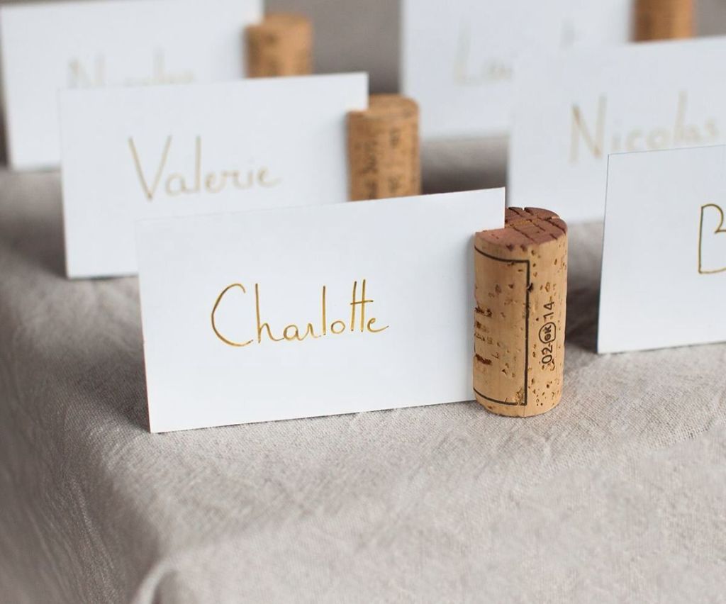 En placement de table pour les invités, ou pour indiquer les mets d’un repas