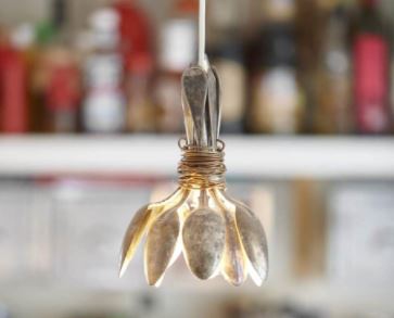 Il y en a plusieurs qui sont très sympas ! J’adore la suspension avec les cuillères en argent. J’avais déjà vu ce système dans un restaurant à Paris, mais en beaucoup plus grand et j’étais restée un peu scotchée par l’idée…