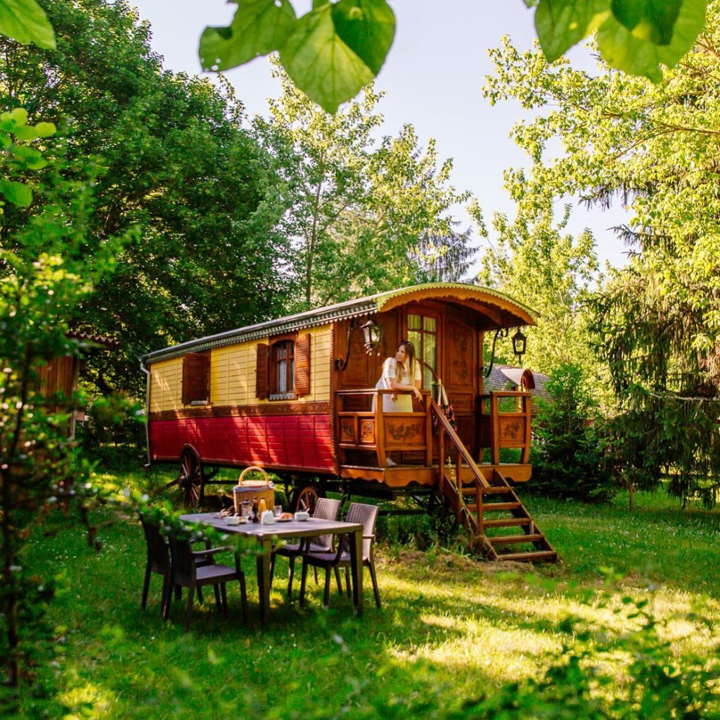 Il propose10 variétés d’hébergements traditionnels insolites des 4 coins du monde : cabanes, roulottes, yourtes, tentes, Œnolodge, roulotte…