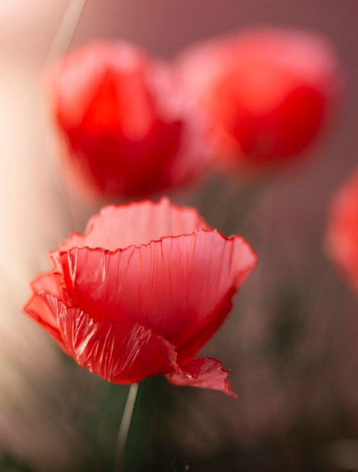 Ses fleurs poétiques combinent des matériaux plastiques recyclés pour les pétales diaphanes, ainsi que des filets, cordes, ou poils de brosses pour former étamines et pistils.