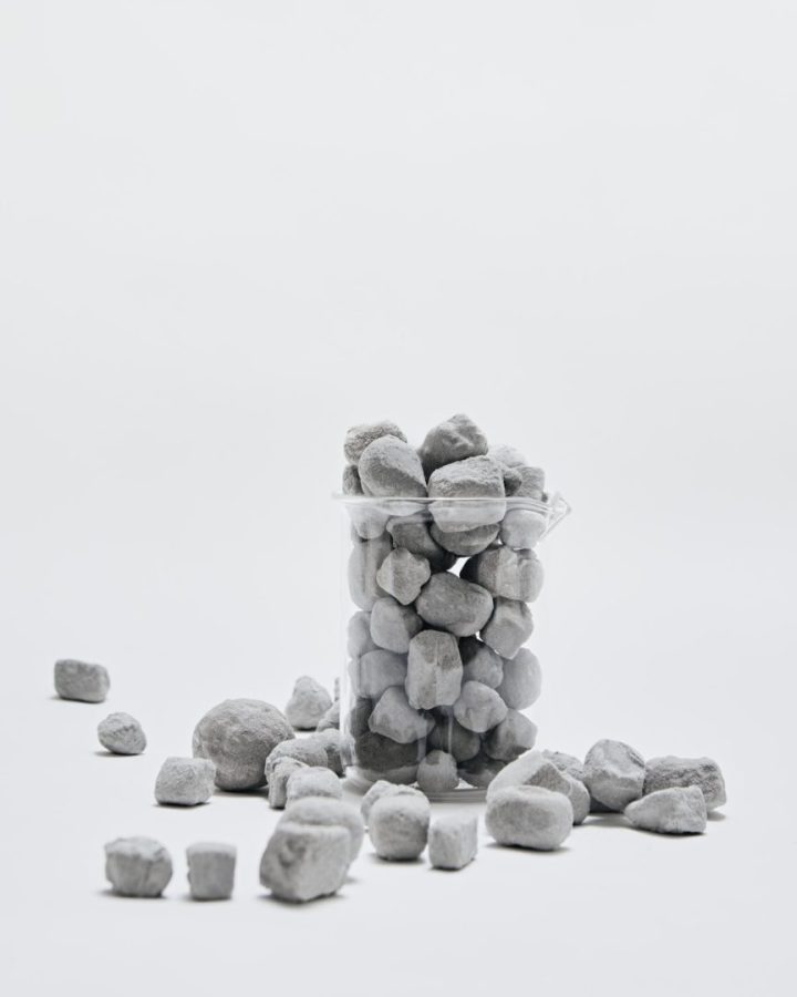 Ce fossilisateur peut traiter jusqu’à 2500 tonnes de déchets par an, en les broyant en farine avant d’y ajouter un liant pour former ces granulats.