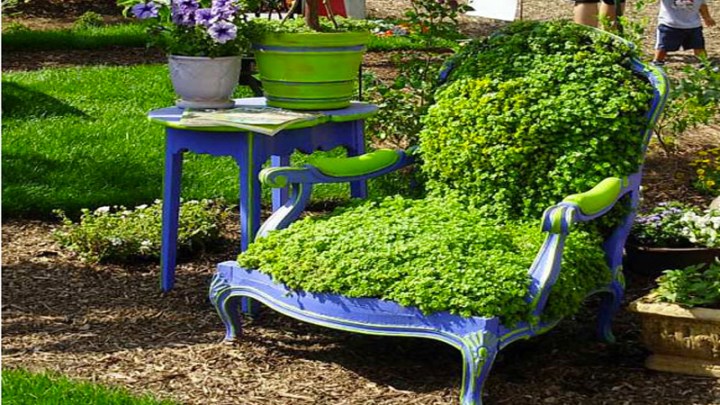 Un fauteuil usé, mais dont on ne veut pas se séparer, pour redonner un coup de fouet au jardin