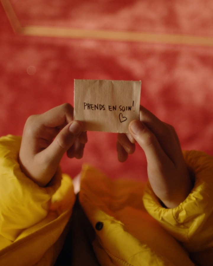 Réalisée par l’agence Rosapark, elle met en scène la transmission entre deux sœurs, d’une doudoune jaune, un de des produits iconiques de la marque.