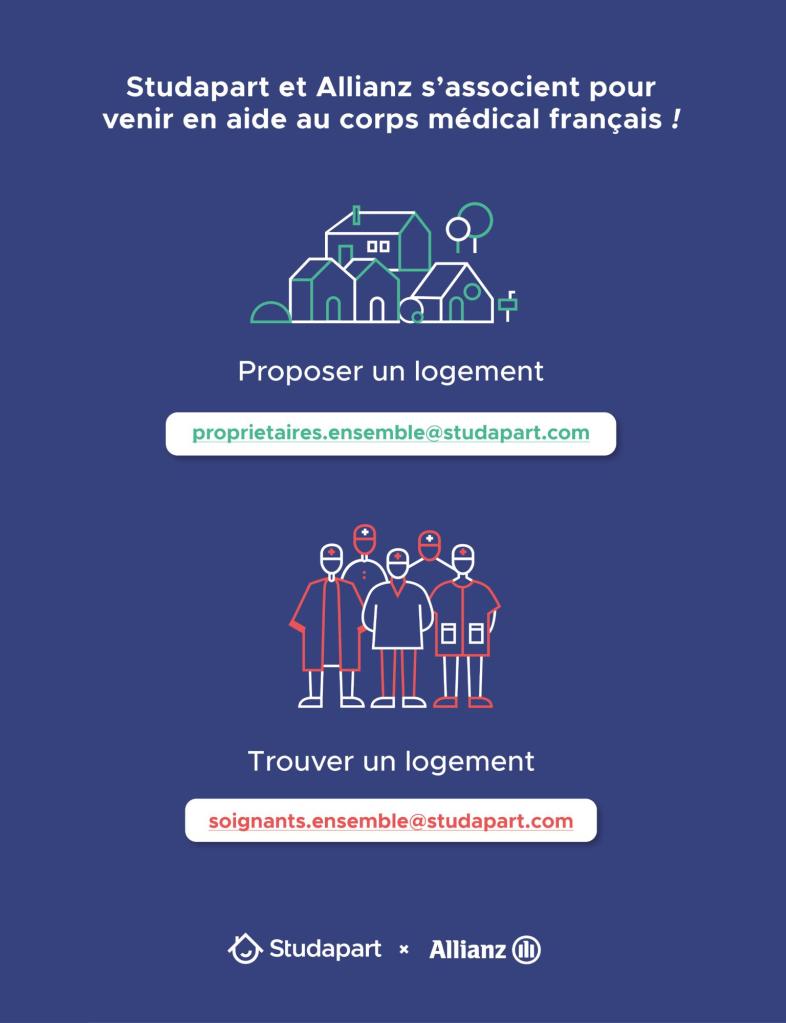 Depuis deux ans Studapart et Allianz collaborent ensemble pour faciliter l’accès au logement au plus grand nombre. Dans cette dynamique et face à la crise sanitaire, ils ont décidé de poursuivre leur mission afin d’aider les soignants en les logeant gratuitement.