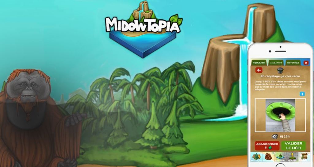 Midowtopia est un jeu mobile avec des défis autour de la mobilité, des économies d’énergie, du zéro-déchet… qui invite les joueurs à relever des défis éco-responsables dans leur vie réelle, mais aussi à dépolluer leur île et à réintroduire des espèces animales en son sein.