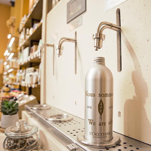L’Occitane teste la possibilité de recharger en magasin ses flacons de gel douche.