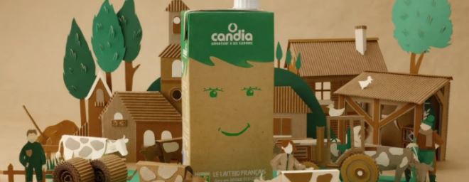 Pour son lait bio français, Candia lance une nouvelle brique éco-conçue sans aluminium, et avec 75% de carton recyclable, issu de forêts gérées durablement.