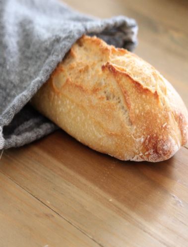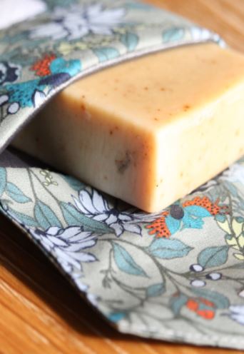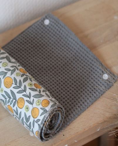 C’est dans son atelier qu’elle crée ses articles pour la cuisine comme l’essuie-tout lavable ou le sac à pain, mais aussi pour la salle de bains, comme la pochette à savon ou la charlotte de soin, en utilisant le plus possible de tissus upcyclés