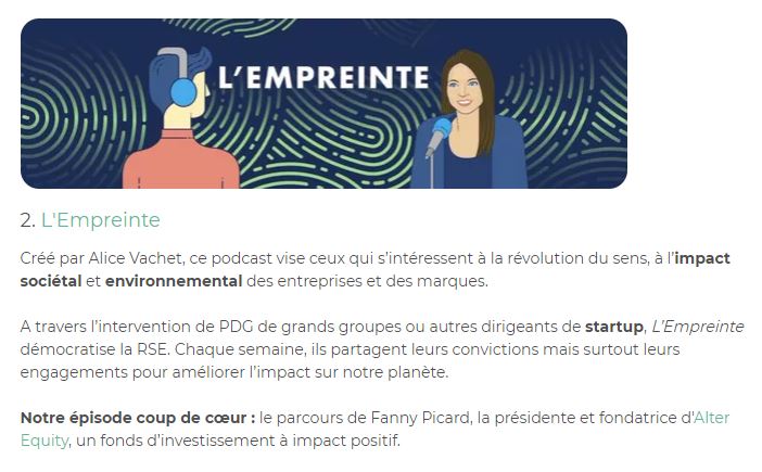 ALTER EQUITY : Fanny Picard dans l’Empreinte, podcast rĂ©fĂ©rence de la RSE