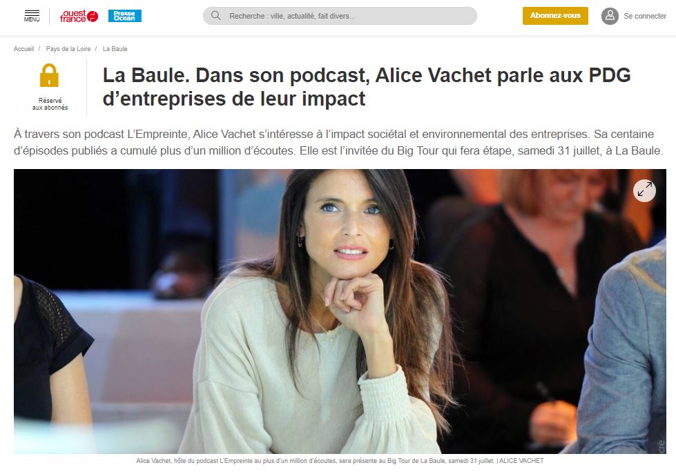 OUEST-FRANCE : La Baule. Dans son podcast, Alice Vachet parle aux PDG dâentreprises de leur impact
