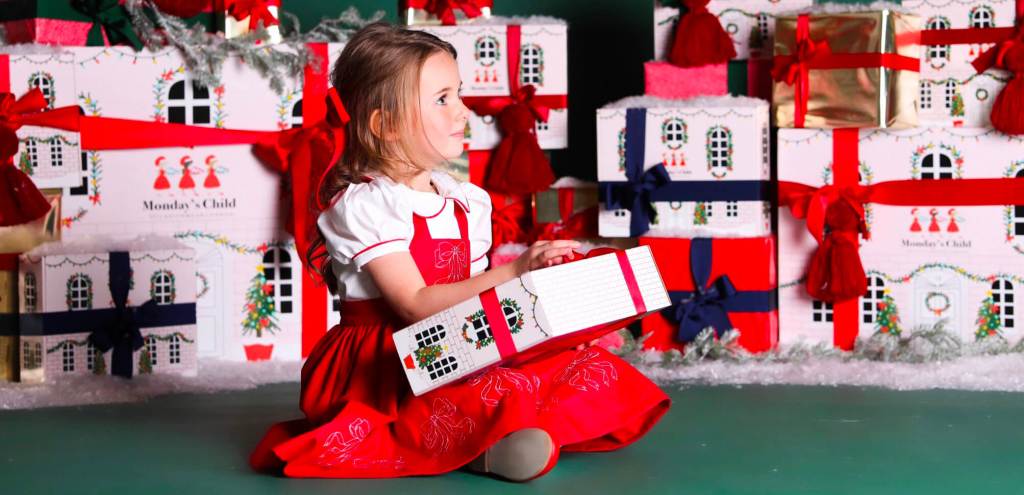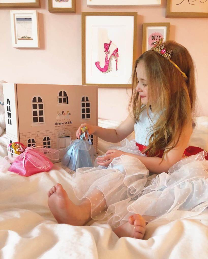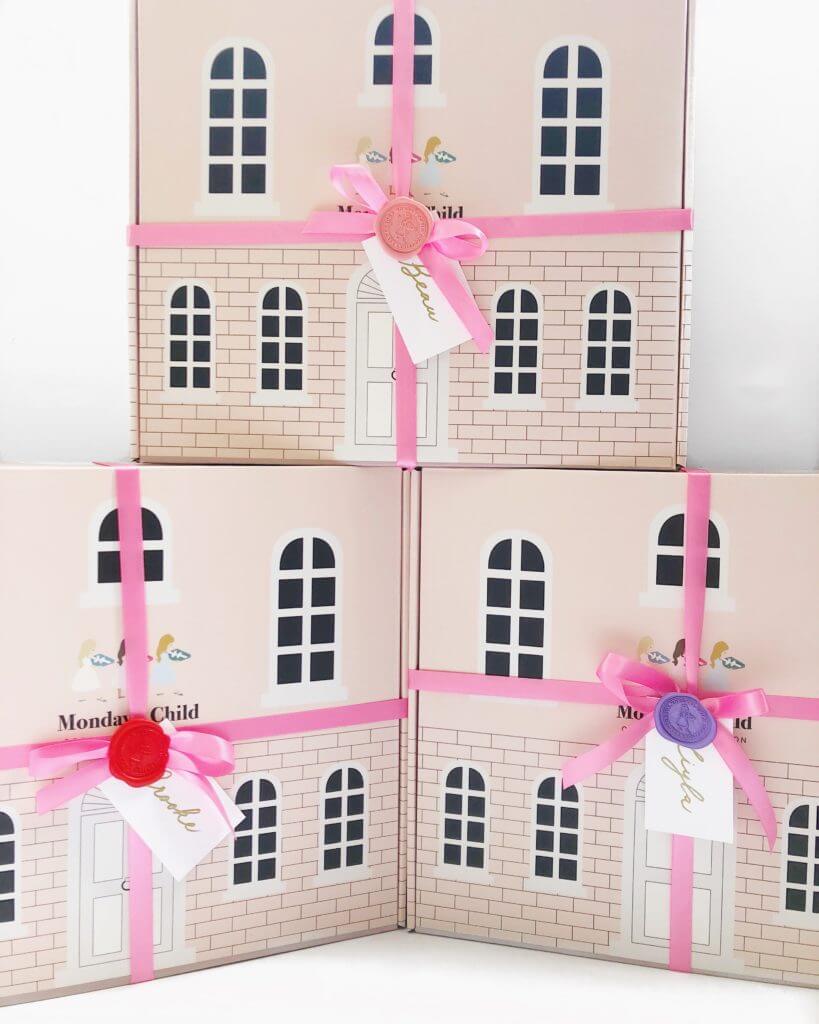 Elle souhaite que la beauté de recevoir une robe Monday’s Child commence par ouvrir la boîte, puis détacher le nœud pour visualiser une charmante petite maison rose, et enfin voir apparaître la robe à l’intérieur.