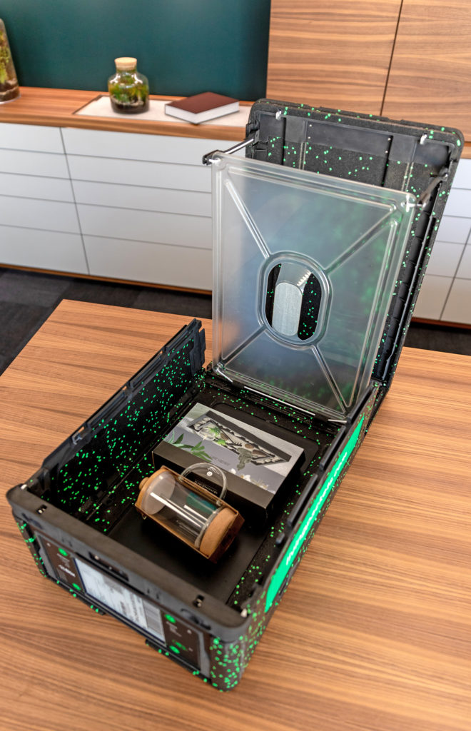 Il peut s’aplatir telle une enveloppe pour l’envoi de documents, dispose d’un filet de maintien, et expéditeurs comme prestataires peuvent suivre son parcours en temps réel, pour savoir s’il a subi des chocs ou s’il a été ouvert.
