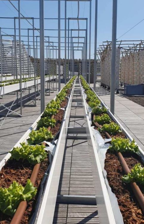 Confiée à Agripolis et Cultures en Ville, c’est sur le toit du hall 6 qu’elle cultive en aéroponie et hydroponie via des traitements naturels utilisés en agriculture biologique, des variétés anciennes sans pesticides.