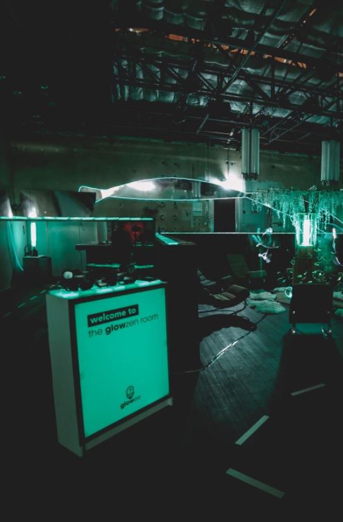 La startup propose déjà une salle de relaxation en entreprise, la Glowzen Room, avec un tube central irradiant une lumière apaisante.