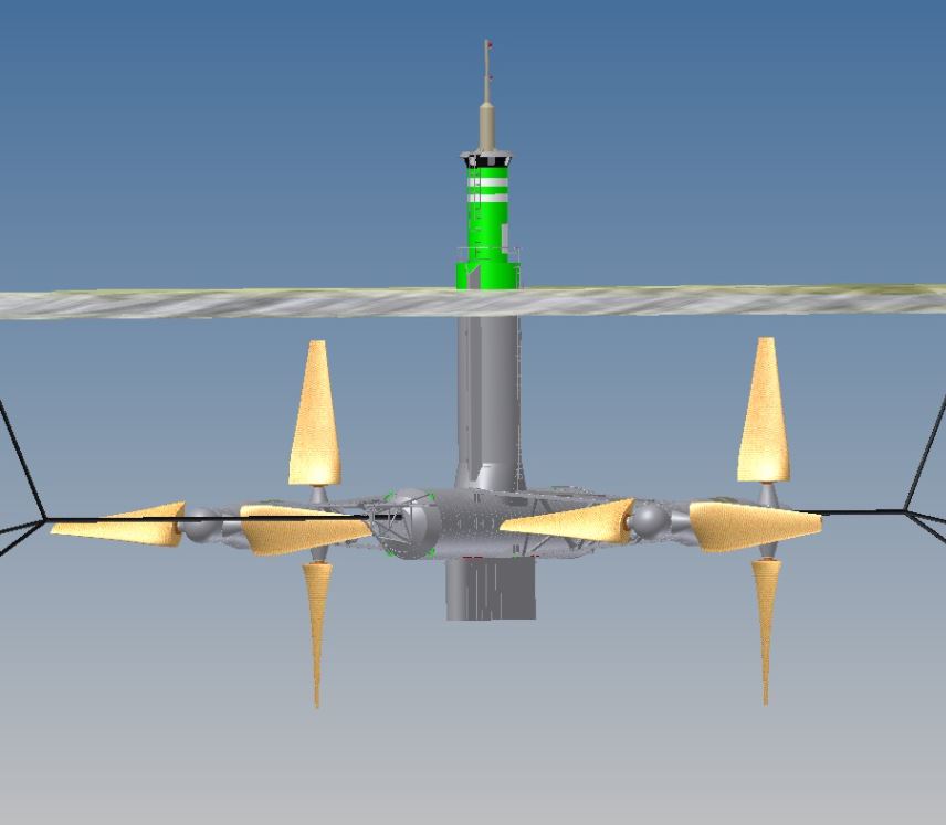 Amarrée sur le même principe qu’une éolienne flottante à axe horizontal, cette construction flottante Hydra Tidal , utilise aussi bien l’énergie des courants que l’énergie des marées.