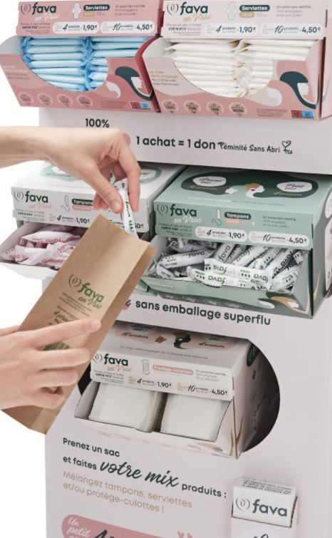 Le groupe Casino déploie la première offre de protections féminines en vrac de France, avec FAVA, une start-up proposant des produits français certifiés 100 % coton biologique GOTS, sans produit chimique, chlore, ni pesticide.
