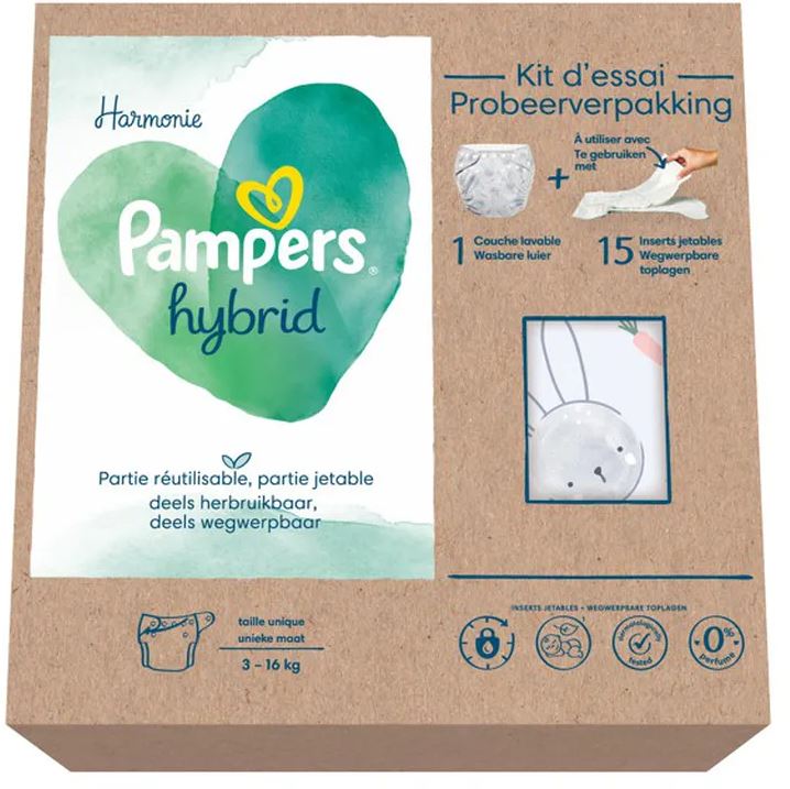 Pampers, la marque phare de Procter & Gamble dans l’hygiène bébé, a lancé une couche mi- réutilisable, mi-jetable, la Pampers Harmonie Hybrid.
