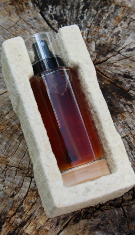 Il est ensemencée avec du mycelium, qui agit comme un liant, avant de macérer et de remplir des moules thermoformés jusqu’à son démoulage et l’ultime phase de déshydratation.
