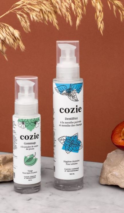Cozie est une marque de cosmétiques simples & naturels, labellisés Nature et Progrès ou Cosmécert, en contenants en verre, consignés et rechargeables.