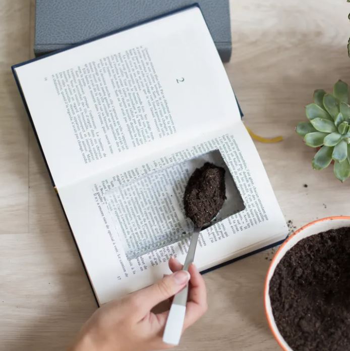 Rabattez 2/3 pages pour protéger le film visible, puis découpez-en 2/3 autres, pour camoufler le plastique. Tapissez le fond du livre de terre, puis mettez y les plantes de votre choix.