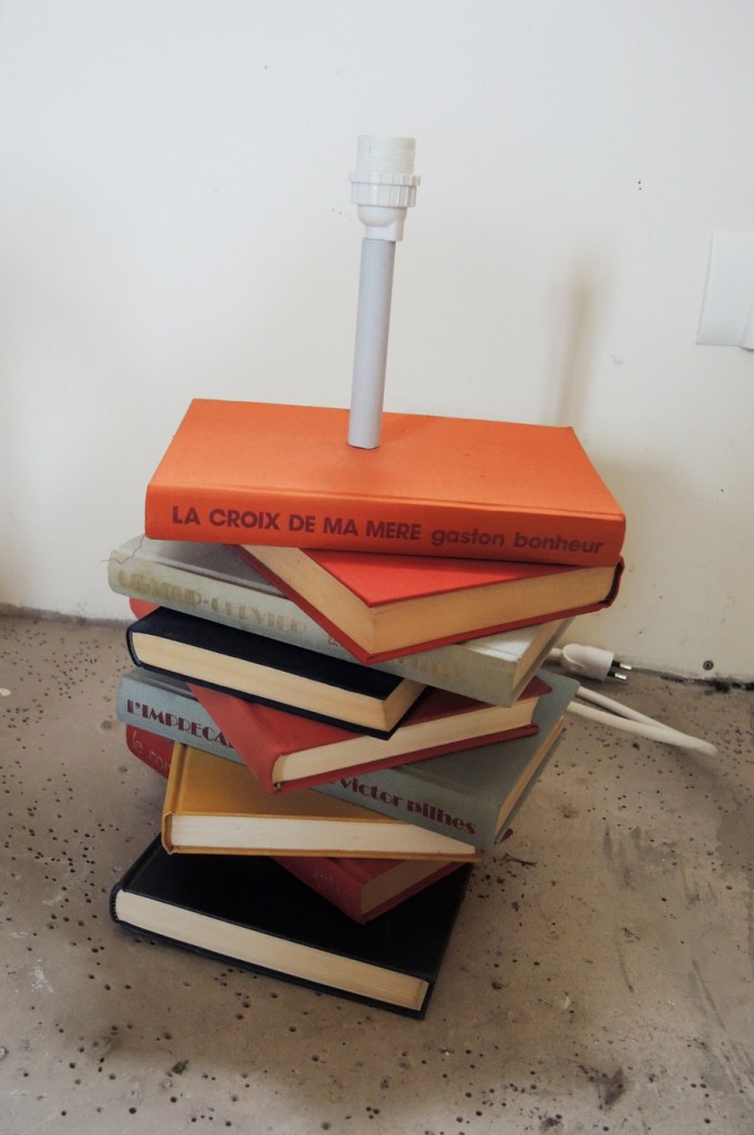 Disposez d’abord vos vieux livres en pile, en leur donnant la forme que vous voulez, et mesurez sa hauteur.