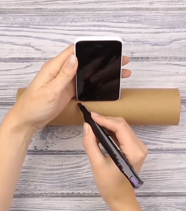 Avec un feutre, marque la taille de ton téléphone et découpe un rectangle de cette taille. Tu peux décorer le rouleau à ta guise. Découpe ensuite des trous du diamètre du rouleau dans tes verres. Enfin, emboîte-les aux deux extrémités du rouleau… Et voilà !