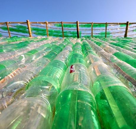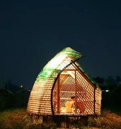 Uniquement rĂ©alisĂ©e avec des bouteilles en plastique et du bambou, issu de forĂȘts durables, la cabane a Ă©tĂ© imaginĂ©e de façon Ă rĂ©sister aux intempĂ©ries.