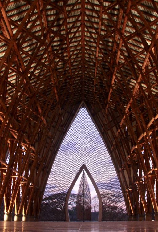 Simon Velez, architecte colombien reconnu pour son matĂ©riau de prĂ©dilection : le bambou Guadua, rĂ©alise en 2000 son Ćuvre la plus connue : la CathĂ©drale Notre-Dame de la PauvretĂ©, Ă Pereira en Colombie.