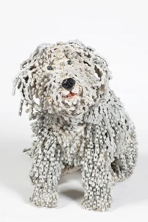 En 2010, l’artiste a choisi de se concentrer sur un matériau – les chaînes de vélo et sur un sujet – les chiens. Le matériau a été découvert par hasard lors d’une de ses visites dans un atelier de réparation de vélos. Elle a demandé au propriétaire de lui garder ses déchets. Le résultat a été la première série de chiens UNCHAINED.