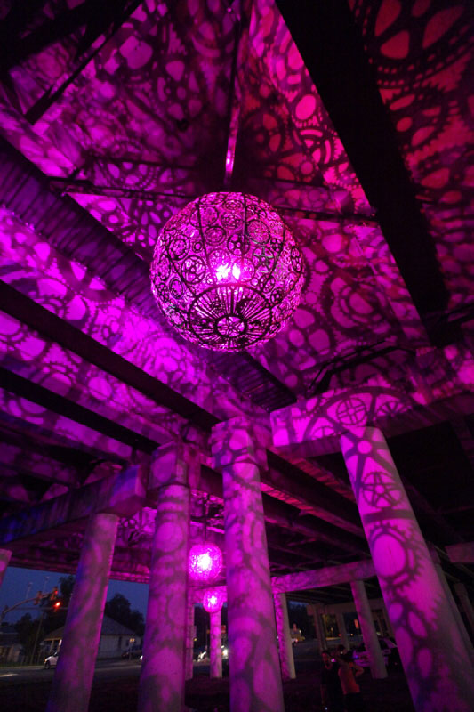 La sculpture suspendue dans un passage souterrain d’autoroute à San Antonio, se compose de six lustres illuminés. Les œuvres, équipées de LED donnent un jeu d’ombre impressionnant.