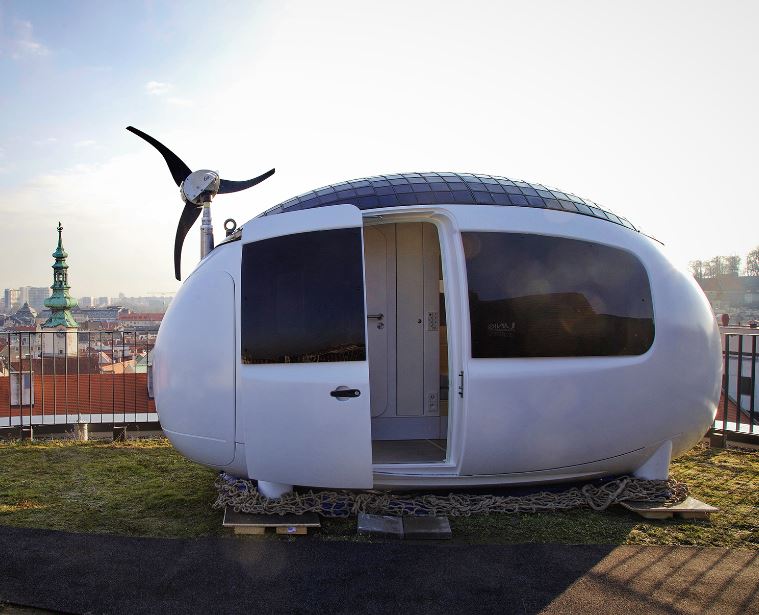 En effet, la capsule dispose dâun panneau solaire sur le toit et dâune Ă©olienne de 750 Watts, puissante mais silencieuse.