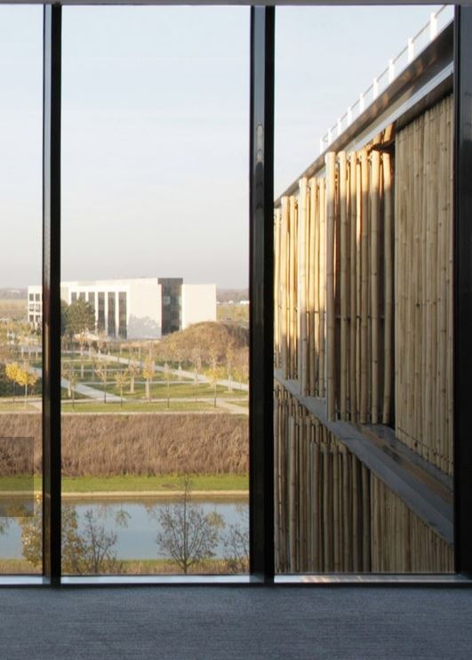 LabellisĂ© Haute QualitĂ© Environnementale (HQE) et BĂątiment Basse Consommation (BBC), c’est l’un des premiers ensembles tertiaires a choisir de revĂȘtir ses façades de bambou, pour ses qualitĂ©s durables, rĂ©sistantes et esthĂ©tiques, bien que considĂ©rĂ© comme exotique.