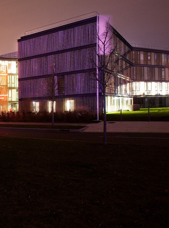 Les façades nord sont transparentes, alternant vitres claires et translucides, et les es espaces d’accueil sont mis en avant par un atrium de grande hauteur.