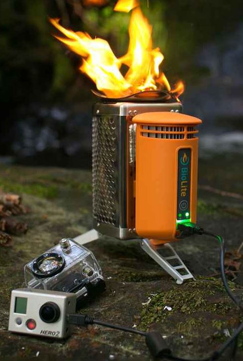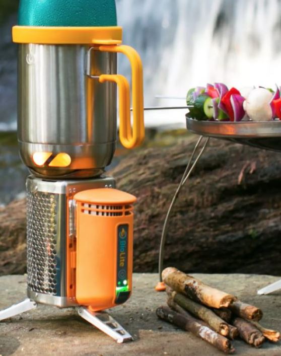 Biolite propose une gamme de réchauds à bois capables de recharger les petits appareils électriques en pleine nature, à des kilomètres du premier réseau électrique.