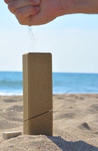 Marc Nicolau et Daishu Ma, les concepteurs du studio de design espagnol Alien and Monkey, ont créé Sand packaging, un emballage à base de sable, qui retourne à la terre après utilisation.
