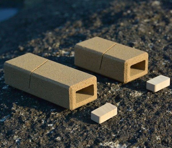Essentiellement constitué de sable et de sciure de bois, deux ressources naturelles très abondantes sur terre, il est issu d’un procédé artisanal pour solidifier les particules de sable et de poussières.
