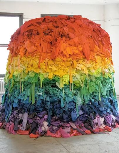 Guerra De La Paz est un collectif de deux artistes cubains – Alain Guerra et Neraldo de la Paz – qui manie l’art du recyclage en sculptant les vieux vêtements récupérés, pour illustrer le gaspillage de l’industrie de la mode.