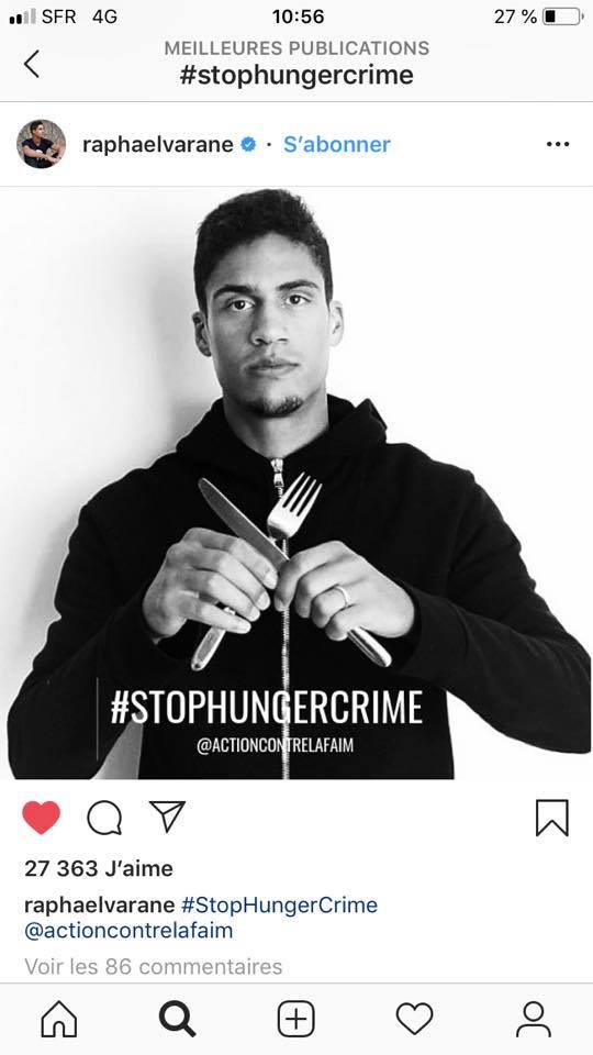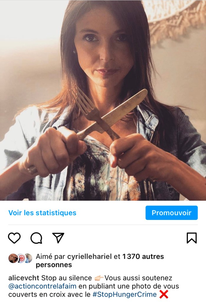 Action Contre la Faim incite donc massivement les internautes ร partager le hashtag #StopHungerCrime sur leurs rรฉseaux sociaux, en postant selfies, vidรฉos, photos sur lesquels ils sont invitรฉs ร brandir symboliquement les deux couverts croisรฉs. Chaque post รฉquivaudra ร 1 voix.