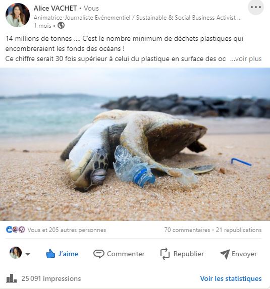 Alice รฉtait ambassadrice de la thรฉmatique Opinion, catรฉgorie spรฉcifique de l’application, parmi les 5 dont Climat ; Recyclage ; Mode de Vie et Ressources Naturelles.
