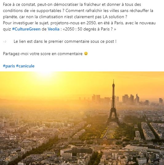 Parce que l’รฉcologie cโest lโaffaire de tous, VEOLIA propose des quizz hebdomadaires pour enrichir vos connaissances !