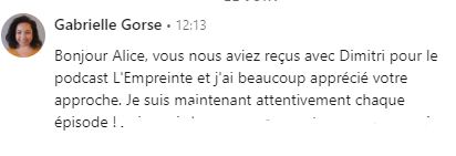 Alice arrive à rendre ce podcast inspirant et motivant pour toute personne ayant l’envie d’entreprendre. Je le recommande vivement et j’ai déjà hâte d’écouter le prochain épisode 🙂